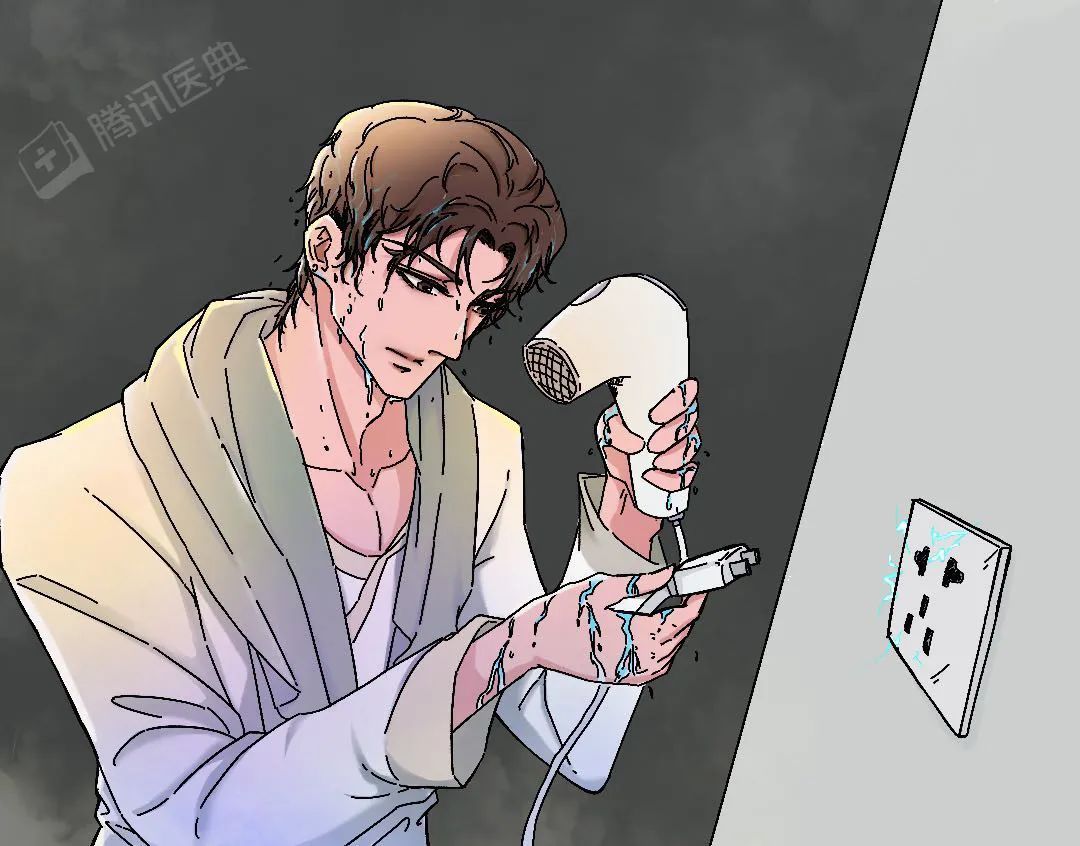 图3:洗澡后,手没擦干就去插吹风机电源。
