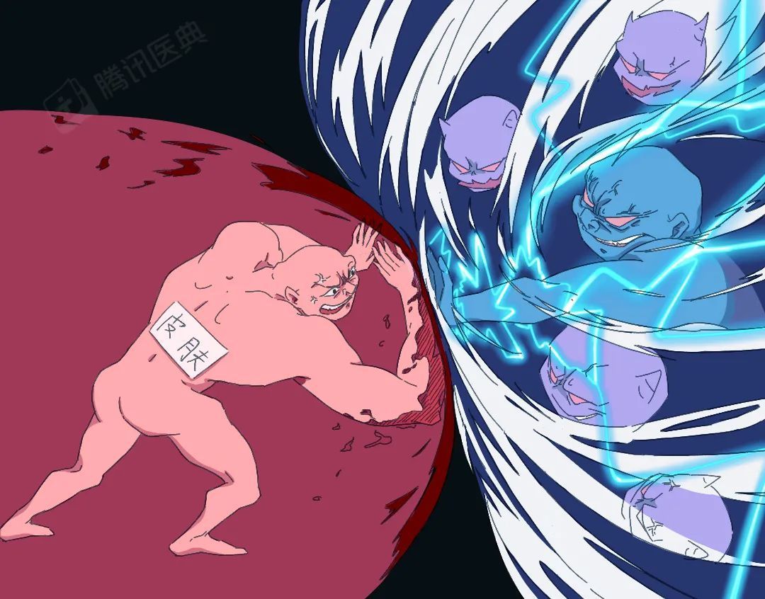 皮肤,人体城的守卫士兵,有着最大的电阻,是拦截电流的主力军。