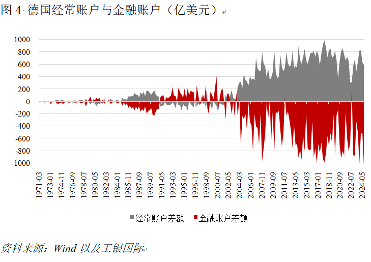 从国际收支平衡来看,经常账户和金融账户的差额理论上应互为镜像,即一方为顺差时,另一方通常为逆差。因此,经常账户与金融账户同时出现净流入的情况在实际操作中基本是不可能的。以美国为例,常年保持着经常账户的逆差与金融账户的顺差。相反地,德国则是保持着经常账户的顺差与金融账户的逆差。