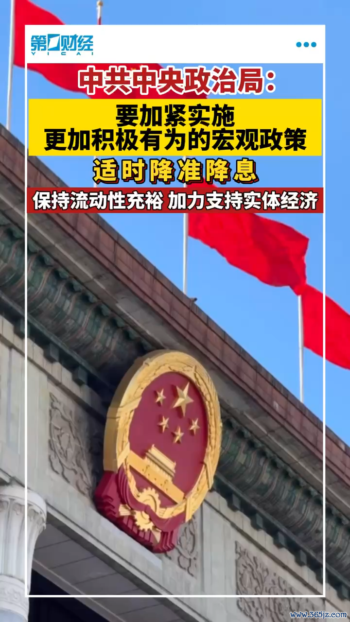00'07'' 中共中央政治局:要加紧实施更加积极有为的宏观政策,适时降准降息,保持流动性充裕 加力支持实体经济中共中央政治局:要加紧实施更加积极有为的宏观政策,适时降准降息,保持流动性充裕 加力支持实体经济