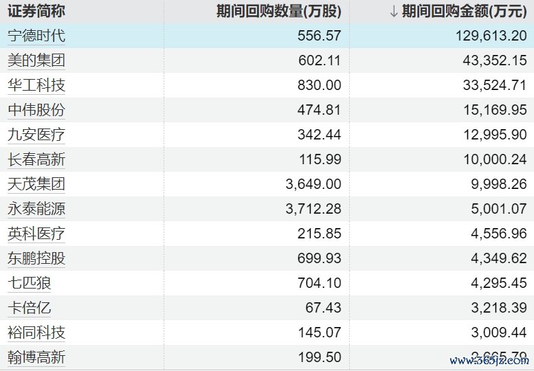 50家上市公司股票获回购,宁德时代回购金额最高50家上市公司股票获回购,宁德时代回购金额最高